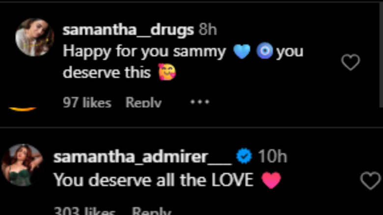 Other users praised Samantha and Raj and sent best wishes to the actress as their romance rumours grew more intense. "You deserve all the love," one user wrote, while another added, "Happy for you, Sammy, you deserve this."