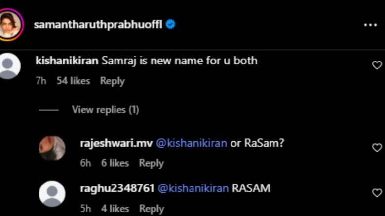 A netizen responded to the purported couple in the post's comment section, saying, "Samraj is new name for u both." Another user responded to the same with the amusing comment, "RASAM."